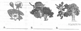 Внешний облик растений, отражающий их приспособленность к условиям среды обитания, называется жизненной формой. Подпишите под каждым растением, изображённым на рисунке, характерную для него жизненную форму.