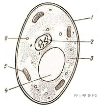 После изучения строения клетки гриба под микроскопом ученик изготовил модель клетки из пластилина. Что на этой модели он обозначил цифрой 4?