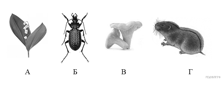 На рисунке буквами обозначены организмы, которых встретили ребята. Запишите под каждой буквой в поле ответа номер соответствующего животного из представленного ниже списка.