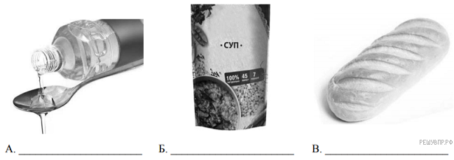 Растения, указанные в таблице, человек использует для производства продуктов питания. Под каждой из приведённых ниже фотографий подпишите название соответствующего растения, которое используют в каждом случае.