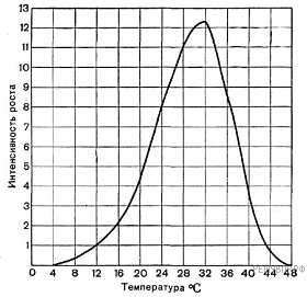 При какой температуре интенсивность роста максимальна?